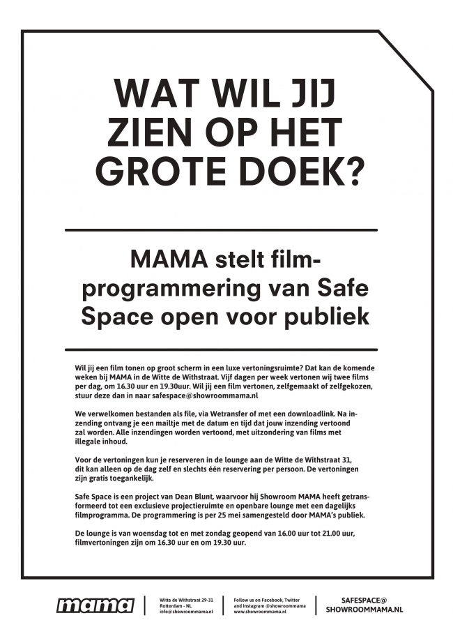 Wil jij een film tonen op groot scherm in een luxe vertoningsruimte? Dat kan de komende weken bij MAMA in de Witte de Withstraat.