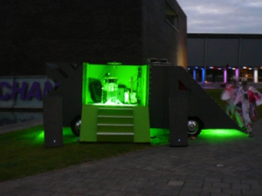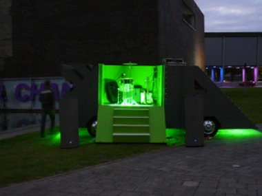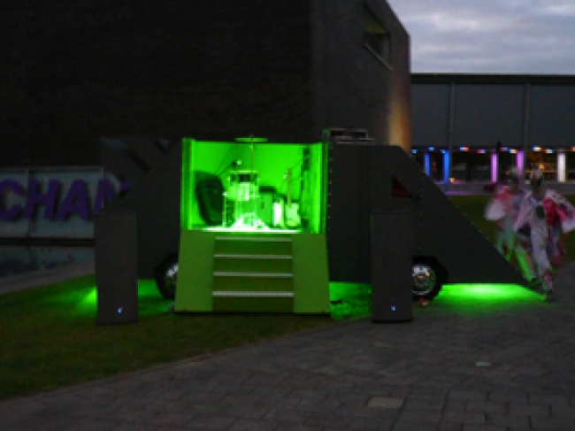 En dan hadden we nog de Belgische invasie van Quasar Noise Lab, het collectief van Philip Metten. Drie optredens stonden er gepland, waarvan twee bij nacht. De noise van de bandleden Aldo Struyf en Dave Schroyen was niet zozeer hard maar wel heel erg diep, met een spectaculaire nagalm die van een verlaten truck minutenlang bleef rondzingen. We waren al bang dat onze speakers het niet zouden overleven. En inderdaad, ze gingen dwars door de veiligheidsklep heen....