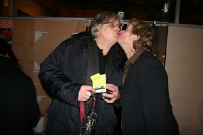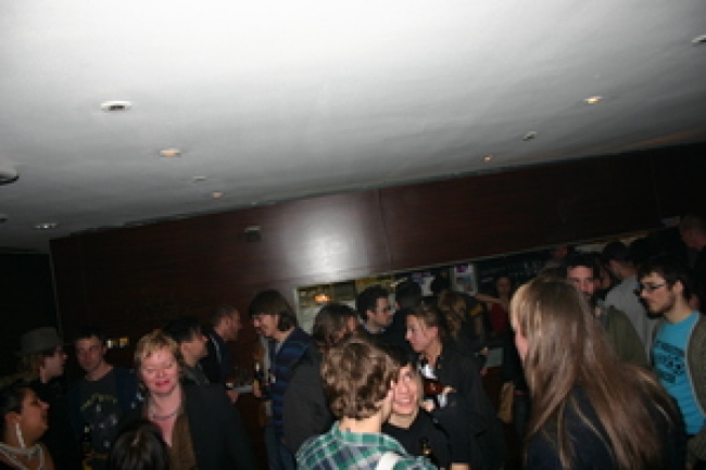 Na de opening stond er een stevige afterparty gepland die direct om 23:00 uur van start zou gaan, zodat we alle gasten van de opening mee konden sleuren de dansvloer op. Maar door falende techniek liep het anders en konden de deuren naar de zaal pas rond 00:30 uur geopend worden. Een buitenlands aandoend tafereel van publiek dat ongeduldig voor de gesloten zaaldeuren stond te trappelen was het gevolg. Toen het eenmaal zo ver was en in rap tempo de artiesten optraden gaf Gina D'Orio, hoewel ze het moest doen met ontoereikende technische middelen, een charming performance weg en er werd stevig gedanst, zelfs op de voor de gelegenheid ongekend mellow Dj Cliche. We zagen Bea de Souza (The Agency Londen) confereren met Hans Martens (Hisk Antwerpen) en Jan Willem Stas (Willem de Kooning én KABK). Vanuit het Boijmans kwam ontwerpduo ZUS met Air directeur Patrick in 't Klooster binnenzeilen en ook na een uitputtend debatprogramma liet Sophie von Olfers (Witte de With) geen verstek gaan. Voeg daar nog een bont gezelschap als Sebastiaan Straatsma (ontwerper van de nieuwe MAMA showroomdesk), het voltallige Humobistenduo, het damescomité Kimberly Clark en vrijwel alle MAMA Rookies die mega-hard aan de show hadden gewerkt aan toe, en het plaatje mag duidelijk zijn: het was druk en de posse had het naar zijn zin.