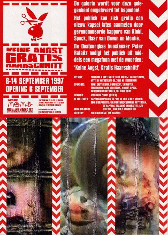 In de plaats van in een spiegel te kijken, keek men naar een monitor waarop beelden te zien waren van dierenleed omwille van de cosmetica-industrie.