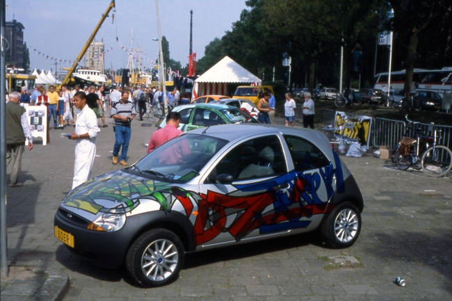 Een rijdende expositie op 16 wielen. De kunstenaars werd gevraagd een nieuwe huid voor de 'Ford-Ka' te ontwerpen. Deze ontwerpen werden op sticker afgedrukt en op de Ka's geplakt. MAMA-mobiel reisde langs de diverse Rotterdamse festivals.