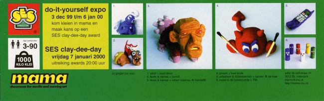 Het basisidee om kinderklei ter beschikking te stellen aan het publiek kwam van de 17-jarige Victor Vroegindeweij. Het idee werd overgenomen en werd in samenwerking met Vroeindeweij door een creatief team uitgewerkt. Deze denktank bestond uit: Ruud Disco aka Oscar de Marci (eveneens 17 jaar) die de titel SES Clay dee day verzon, Sander van Hest (33 jaar vormgever en reclamespecialist) die de research deed. Jeroen Everaert & Boris van Berkum (beiden beeldend kunstenaar en verantwoordelijk voor de MAMA-organisatie) ontwierpen de opzet van de inrichting. Syrup Berboserot ontwierp de uitnodiging.