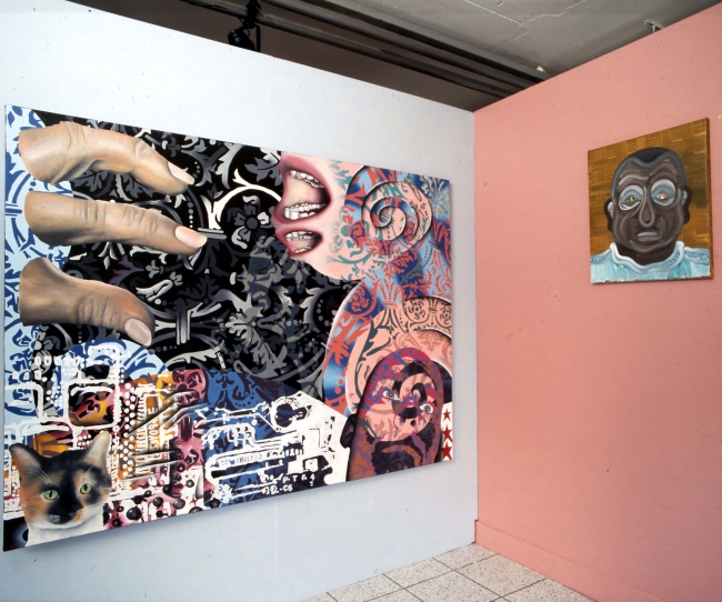 Blikvanger op deze expositie zijn wel de portretten van Hidde van Schie. De stilistische portretten hebben sterk een eigen sfeer, ze zijn heel bedacht, de kleuren passen goed bij elkaar. Ze hebben een eigen vorm, lijnen zijn heel belangrijk. Details zijn ook belangrijk. Kijk maar eens goed naar de ogen. Sommige ogen lijken wel glacékoekjes. Hoe komt iemand er op, zou je kunnen vragen. Tja, Van Schie had ooit een bijbaantje bij de bakker . . .