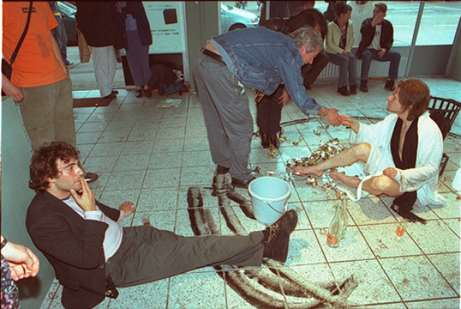 Het werkt als een estafette: Jörgen begint en installeert zijn kunst en later komt Jouni en verandert de tentoonstelling.