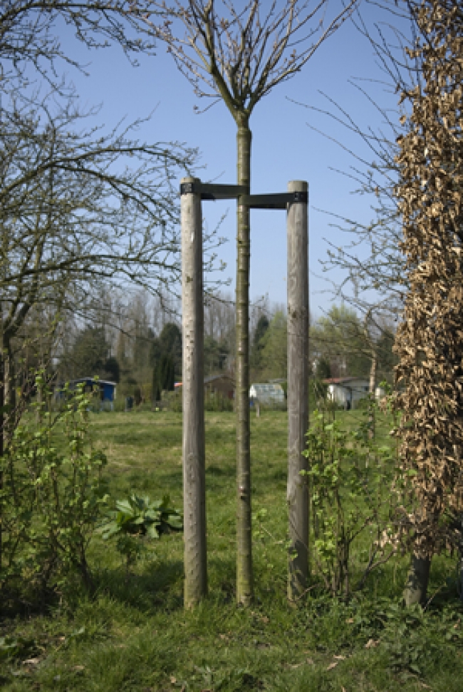 Maar er stond 'Ja' en dat was genoeg en toen kwam ze naar me toe en? - ze wist niet wie ik was - en ze vroeg 'wil je er een spijker in hameren? Het kost 5 shilling.' Dus ik zei, ik had ook al geen geld op zak, dus ik zei 'ik hamer er wel een fantasie-spijker in, krijg je van mij vijf fantasie-shillings' en ze vond dat goed en ze vond het op de zelfde manier goed als ik haar werk, snap je, en (op gekscherende toon) zo hebben wij elkaar dus ontmoet.