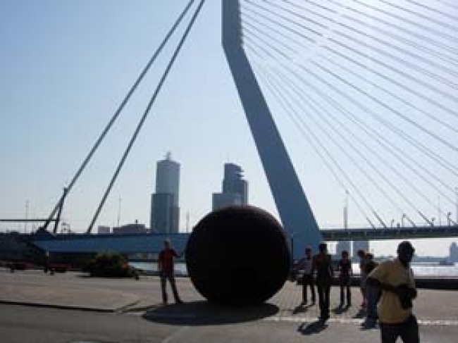 Er moest zelfs een topoverleg tussen MAMA en de betrokken politiedistricten aan te pas komen om dit sensationele project rond te krijgen, maar 8,9 en 10 September is het dan zover. Tijdens De Wereld van Witte de With, het festival dat zich op de culturele as van Rotterdam afspeelt, verschijnt er een enorme, ronde vorm in de stad.